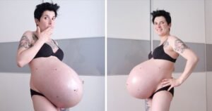 The picture is of a Spanish mother, Laura, four days before giving birth to healthy twins